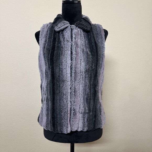 Cejon Vest Womens Small Gray Black Faux Fur Ombre Striped Hook Eye Pockets Lined