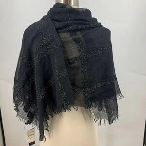 Cejon Women's Lurex Plaid Fringe Edge Wrap Scarf One Size NWT