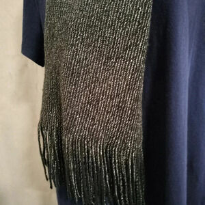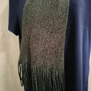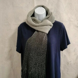 Stylish gradient scarf with a shimmering finish. Perfect for any occasion. It is a Beautiful Ombre of gray and black with silver metallic accents.