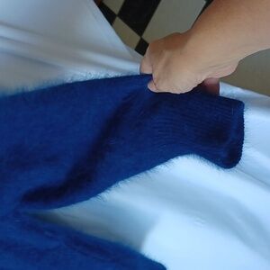 Celan of California cardigan fuzzy blazer, size L, Blue, lined