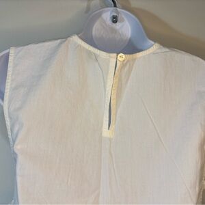 This elegant sleeveless top features intricate yellow embroidery on a white base, perfect for a chic and stylish look.