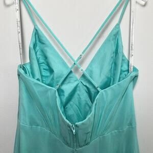 Used as bridesmaid's dress, in excellent condition and worn only once, this gorgeous dress from David's Bridal brand Celebrate also works as a lovely wedding guest/special occasion dress. Adjustable spaghetti straps cross at back. Size 12. Please see garment measurements when flat: