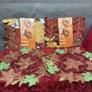 Celebrate Fall Together Bundle Leaf Cutout Table Runner 36" X2 & 2 Place Sets