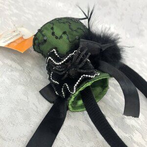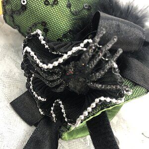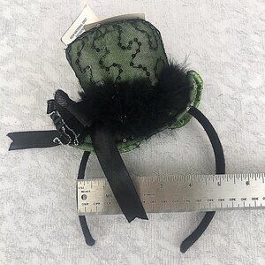 Celebrate It Sequin Black and Green Victorian Style Mini Top Hat on a Headband