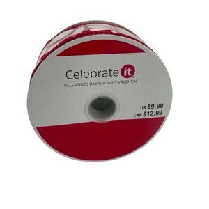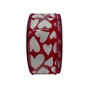 Celebrate It Valentine’s Day Red White Glitter Hearts Wired Ribbon 1.5” Wide