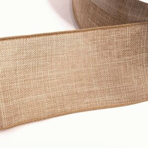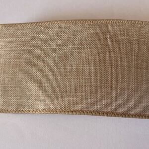 Celebrate It Wired Ribbon Christmas Wreath Tan Faux Linen Jumbo 2.5 in × 75 ft
