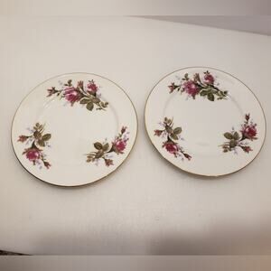 Celebrate Japan Moss Rose China 2 dessert plates gold edging