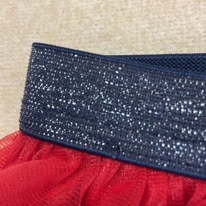 Blue glitter band with mesh over red polyester