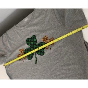 Celebrate Together St Patrick's Day T-shirt Women's Clover Gingham Gray XL