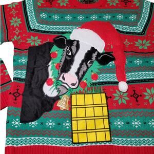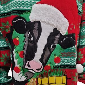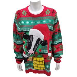 Celebrate Together Women’s XXL Ugly Christmas Sweater Red Green Cow Fair Isle