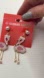 Festive flamingo earrings. Pink and gold design. Perfect for holiday celebrations.