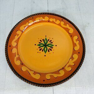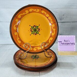 Celebrating Home TUSCAN Orange Red Yellow Rope Trim Stoneware Dinner Plate Set 3