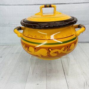 Celebrating Home TUSCAN Oven Safe Stoneware 4 qt Bean Pot Handle Casserole Dish