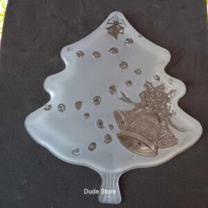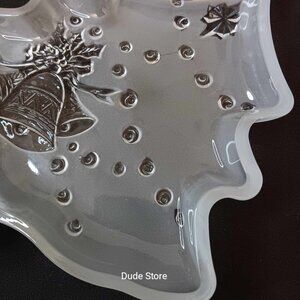 Celebrations - Christmas Tree Dish Plate Bowl Holly Bells Frosted Glass - 7.5"