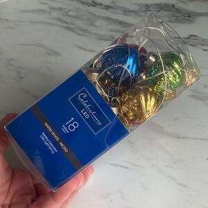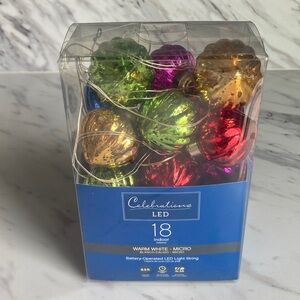Vibrant LED light string with multicolor bulbs. Perfect for indoor decoration. Mercury glass style bulbs, very retro and nostalgic. Has a battery pack for easy decor anywhere, batteries not included.