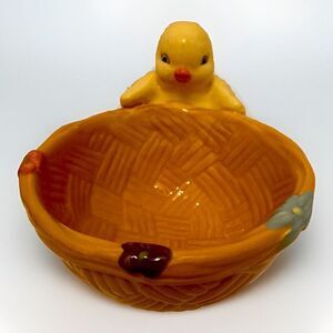 Celebrations Radko 2012 Ceramic Basket Bowl w/ Chick Candy Dish Easter Spring
