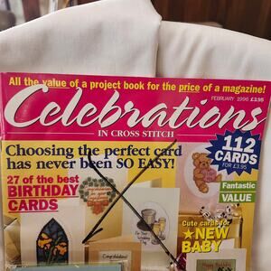 Celebrations in Cross Stitch Magazine UK Feb 1996 112 Card Designs Free Gift B8
