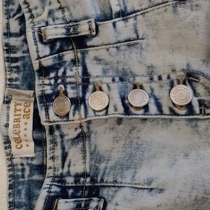 Celebrity Ace Women's Distressed Light Wash Jeans. Four-Button Front Closure. Two Front Pockets. Two Back Pockets. Size 7 / 8. Extremely Stretchable. Has fraying at the hems add to Distressed look. Machine Washable.