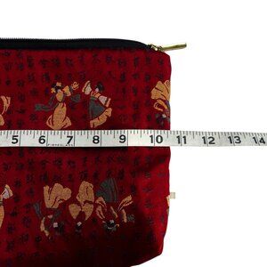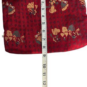 This is a beautiful bag that could be used for many different things. The outside is a shiny red material with Japanese Letters and Geishas.