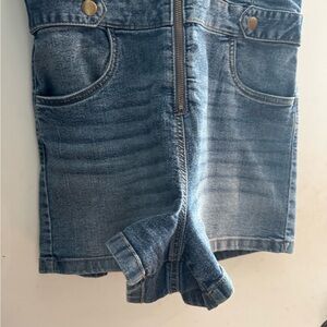 Chic denim jumpsuit with short sleeves. Includes front pockets and zipper.