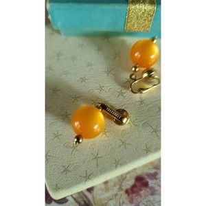 These are a very fun pair of vintage Celebrity signed orange and gold dangling clip-on earrings.