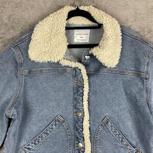 Celebrity Pink Jacket Womens 2XL Sherpa Collar Denim Trucker Cropped Western