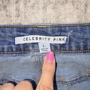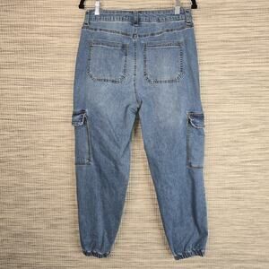 Celebrity Pink Jeans Womens Large Blue Cargo Jogger High Rise Elastic Hem Denim