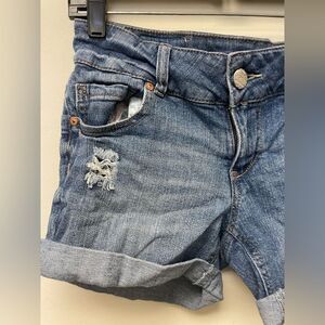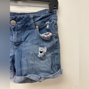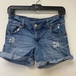 Celebrity Pink Mid Rise Medium Blue Distressed Denim Shorts SZ 5
