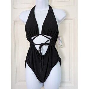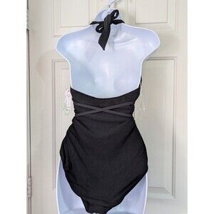 Celebrity Pink One Piece Bathing Suit XL Black Cut Out Waist Straps Halter Top