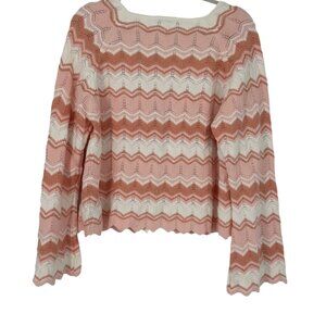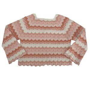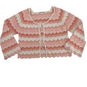 Celebrity Pink Peach & Cream Chevron Knit Tie-Front Cardigan Sweater XXL