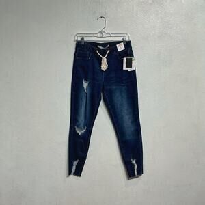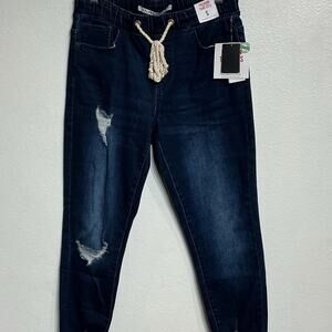 Celebrity Pink Stinger Blue Distressed Pull On Drawstring Denim Pants Sz S NWT