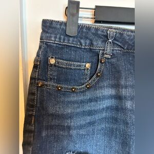Pre owned excellent condition. Worn a handful of times. Stylish denim cutoff shorts with studded pockets perfect for casual outings. Features a classic blue color that pairs well with any top. Juniors size 9. These have stretch!