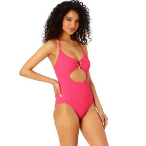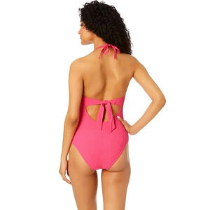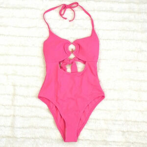 Celebrity Pink Textured One Piece Halter Swimsuit, Dragon Fruit Juniors Size S