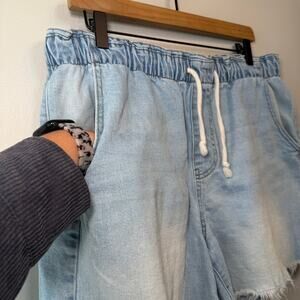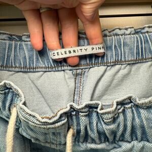 Celebrity Pink Women's High Rise Raw Hem Drawstring Jean Shorts Size Large