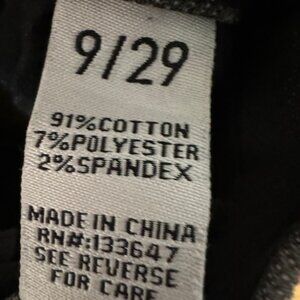 Materials: 91% Cotton; 7% polyester; 2% spandex