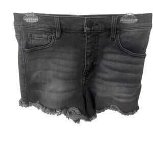 Celebrity Pink Women's Juniors 9/29 Cutoff Shorts Washed Black Stretch Denim Raw