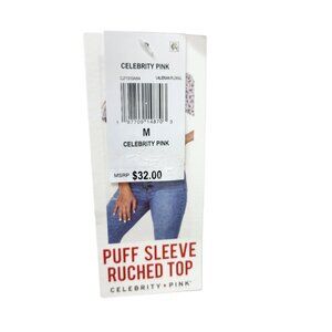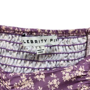 Celebrity Pink Womens Purple Puff Sleeve Ruched Top With Floral Print Size L