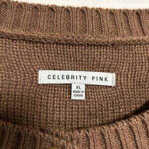 Celebrity Pink Womens XL Cropped Cardigan Brown Cable Knit Swiss Dot Fairycore
