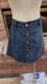 Chic A-line Celebrity Pink skirt in dark blue denim Features a button-down front. Size 7/28.