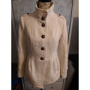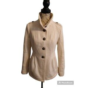 Celebrity pink jacket Cream color Size medium Fully lined 65% cotton 35% polyester See pics for measurements *missing top button on jacket