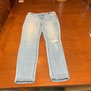 Stylish and comfortable light blue denim jeans perfect for any occasion. These jeans offer a classic fit and timeless style. Mid rise ankle skinny fit no fabric or size tag but super stretchy and probably around a size 6.