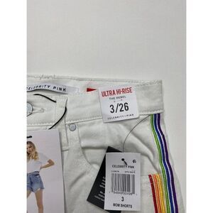 Celebrity Pink Jean Shorts 3 White Juniors' Rainbow Stripe Stretch Raw-Hem NEW