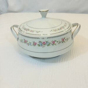 Celebrity Wellington Round Covered Vegetable 7" Round 5" Tall Blue Pink Floral