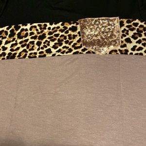 Super soft color block top with leopard and sequin pocket- Never worn! Fits sizes 8/10
