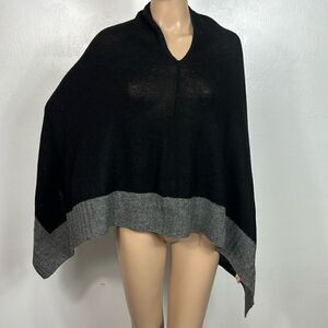 Celeste Wool Cashmere Blend Colorblock Poncho Shawl Cape One Size