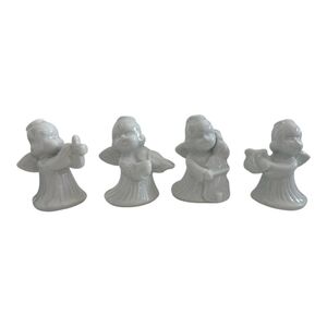 Celestial Angel Figurine 4x White Ceramic Angel Christmas Holiday Tabletop Decor