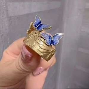 Elegant gold ring featuring delicate blue butterfly accents. Perfect for adding a touch of nature-inspired beauty to any outfit.