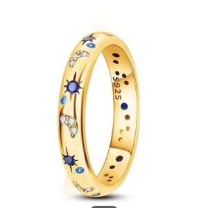 gold tone ring, sterling silver band, zircon stone ring, 925 silver jewelry, blue zircon ring,celestial motif ring, rings, sterling silver, gold-plated, gold tone, celestial, modern, zircon, elegant, accessories