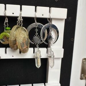 Celestial Gothic Moon And Star Quartz Crystal Earrings