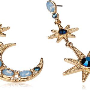 Celestial Moon & Star Drop Earrings Blue Glass Metal Women's Jewelry